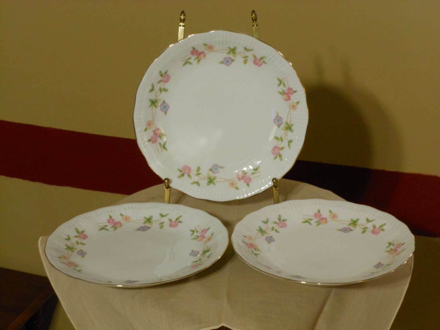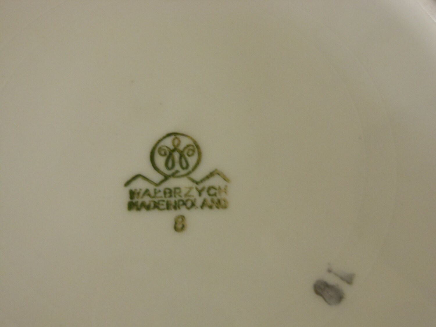 Very good vintage condition, gold rims, made in Poland in the 1950 era. No chips or cracks or crazing, but some slight utensil marks can be seen when held up to the light. Otherwise, very nice. They are 7.5 inches across and weigh a combined 1.5 pound.