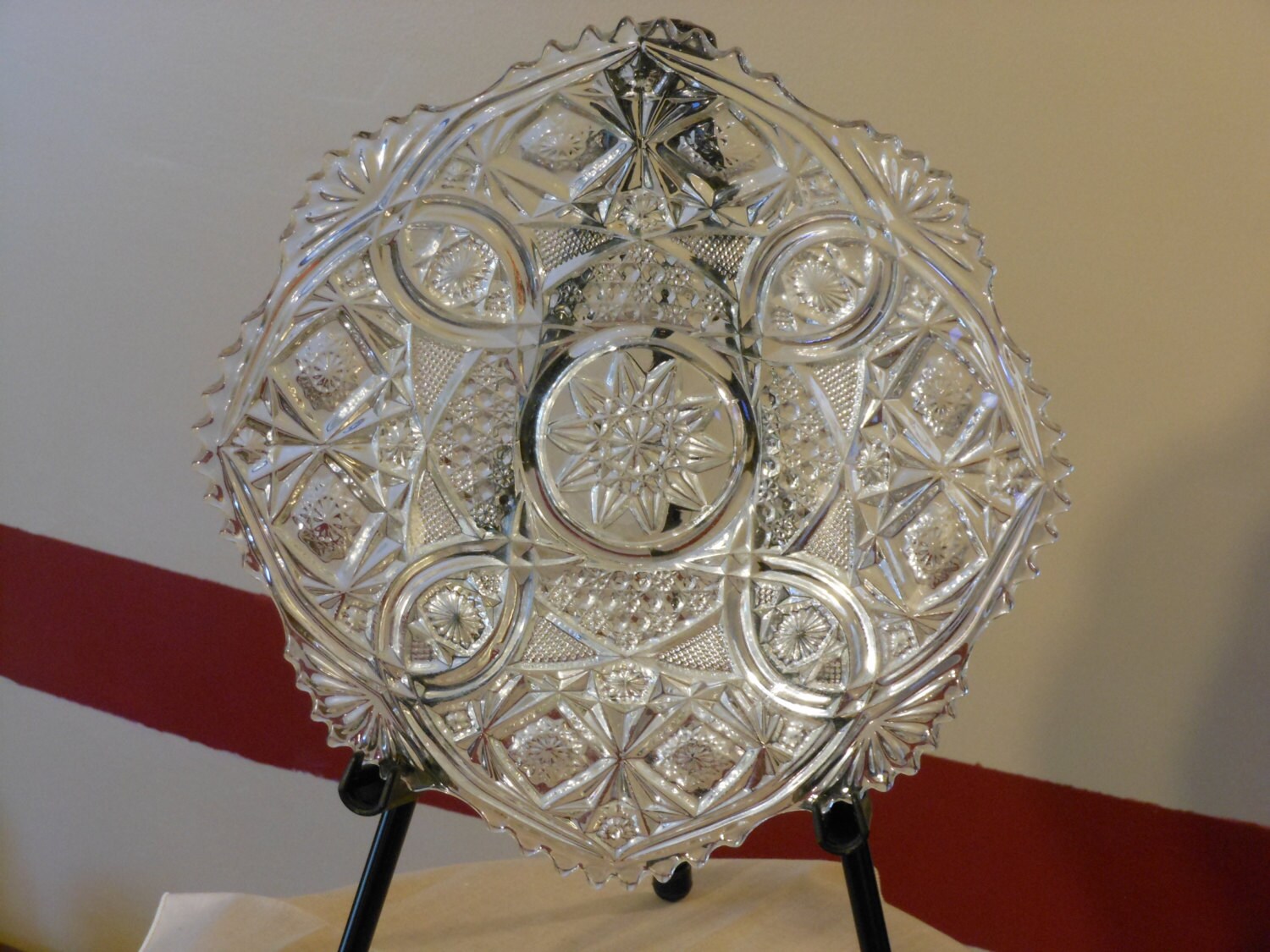 Excellent condition. No chips or cracks. 10-inch cut crystal ABP tray. This piece weighs 1 pound, 13 ounces.