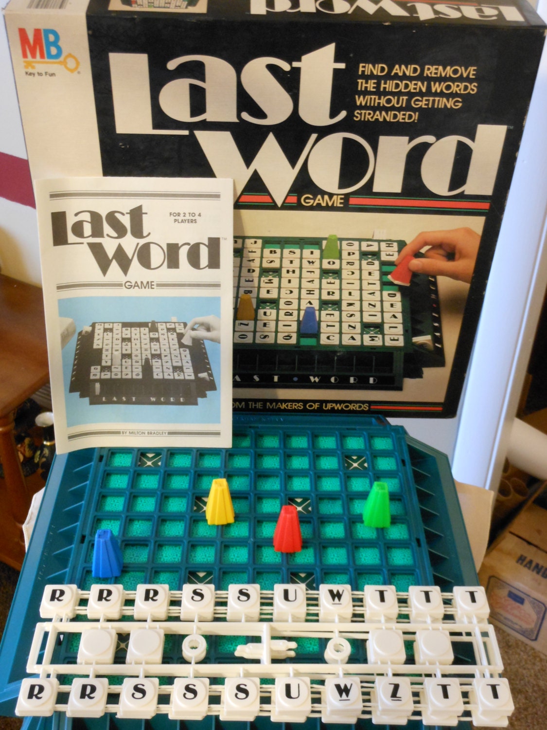 New in box. Never been played. All 92 letters still attached. All parts and instructions present and accounted for in this 1985 Milton Bradley word game. Box is in excellent condition. 2-4 players, ages 10 to adult. The box measures 14 inches by 14 inches by 2.5 inches. This game weighs 1 pound, 15 ounces.