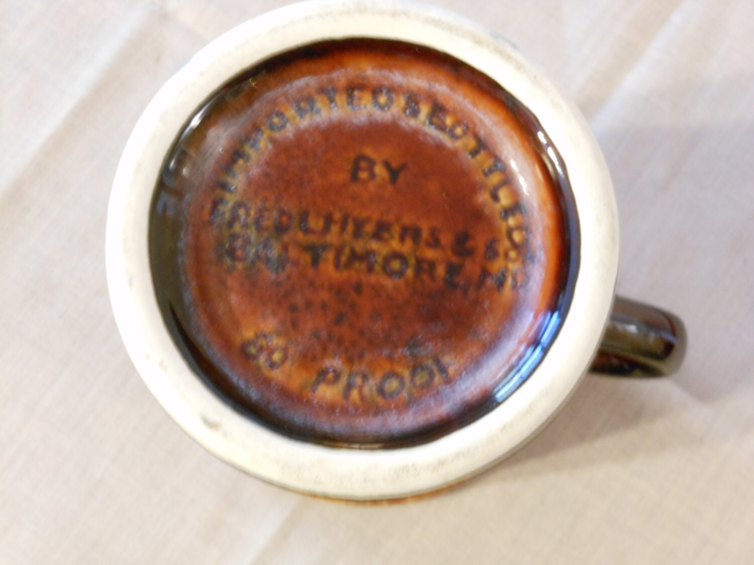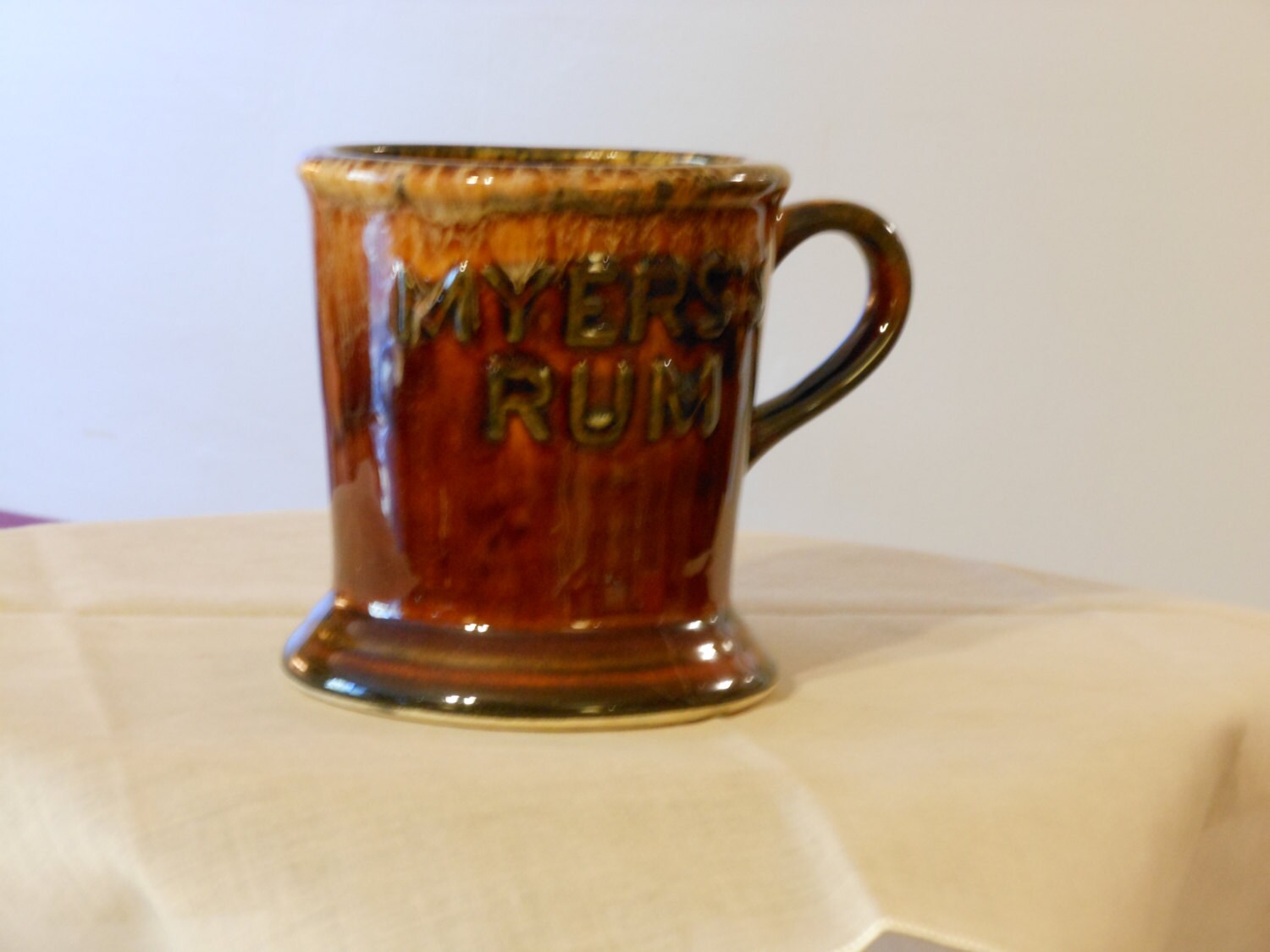 Excellent condition Myers's Rum mug. Vintage. Imprint on bottom: "Imported & bottled by Fred L. Myers & Son, Baltimore, MD. 80 proof." Great for the collector or suitable as a gift. Ideal for hot buttered rum. If anyone asks, it's coffee. This mug is 4 inches high, 3.5 inches around the rim. This mug weighs 13 ounces.