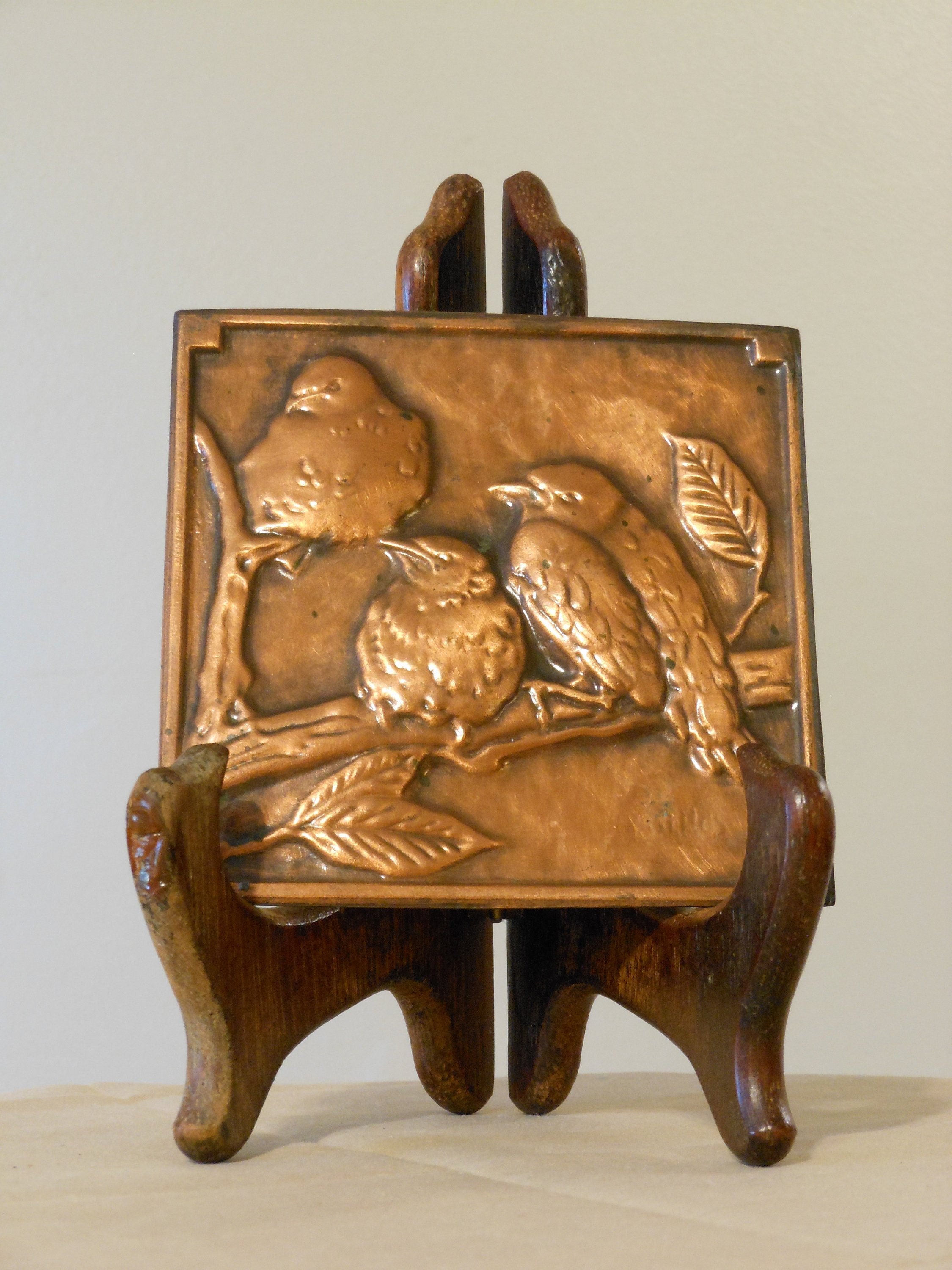 Signed by artist Albert Gilles, who was born in Paris in 1895 and died in 1979. Three sparrows on a limb. Copper repousse. Excellent condition, great detail. Ready to hang, fabric backing. Measures 4 inches square. Weighs 2 ounces.